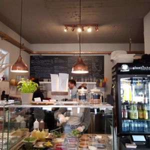 Das Glowkitchen ist Münsters erstes Feelgood Food Cafe. Das Konzept basiert auf clean eating – es werden also reine Zutaten gewählt und verarbeitete Lebensmittel und Produkte mit künstlichen Zusätzen wie Auszugsmehlen oder Zucker vermieden. Dabei soll alles auch möglichst frisch sein. Auf der Speisekarte vom Glowkitchen finden sich dementsprechend eine vielfältige Auswahl an herzhaften Bowls – hauptsächlich vegetarisch und vegan – mit zum Beispiel Quinoa, Kichererbsen, Spinat, Süßkartoffeln und verschieden belegte Brote. Auch Süßes in Form von Frucht-Bowls oder Bananenbrot werden angeboten. Bis auf eine Bowl mit Lachs ist alles vegetarisch.