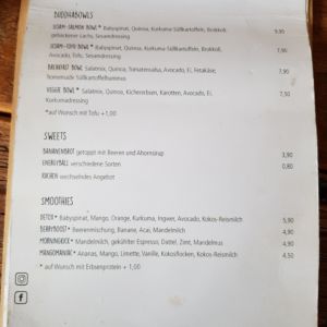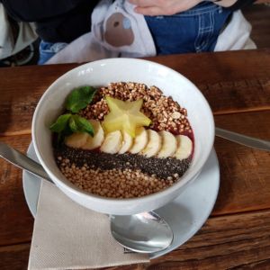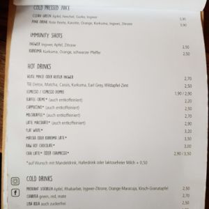 Wir waren an einem Dienstag vormittag gegen 11 Uhr Uhr für einen kleiner Snack hier. Wir bestellten eine Acai Bowl und Café. Zum Abschluss probierten wir noch die zwei Immunity-Shots: Ingwer und Kurkuma.