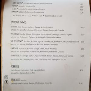 Speisekarte Glowkitchen: Breakfast-Bowl, Detox-Smoothie und Bananenbrot
