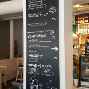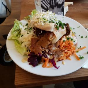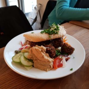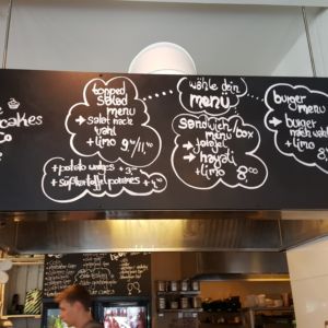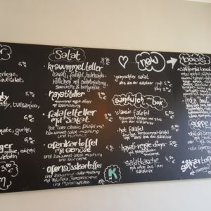 Speisekarte Krawummel: Falafel-Sandwiches, Burger, Salat und Muffins