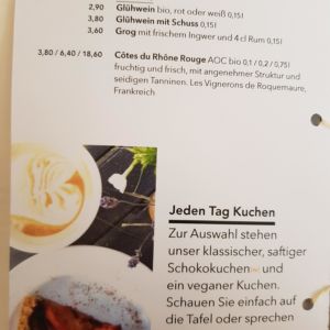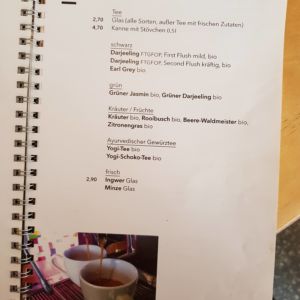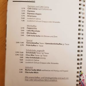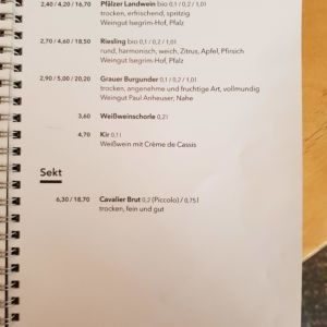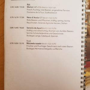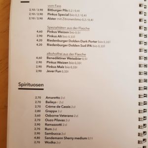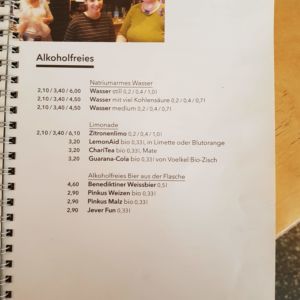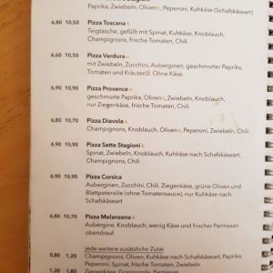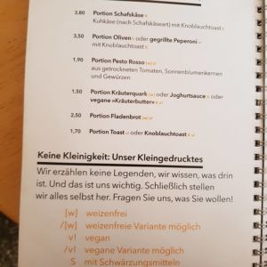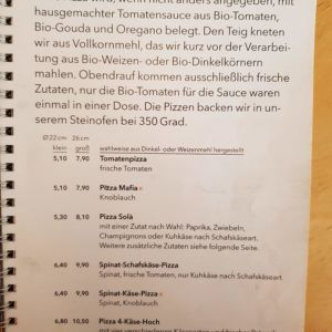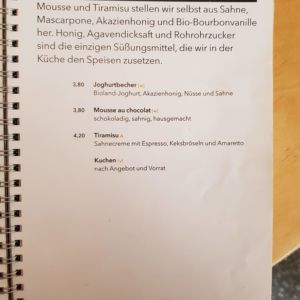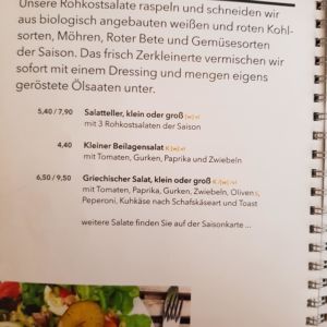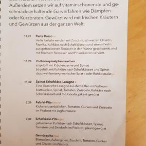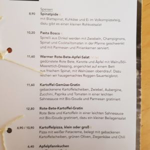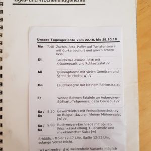 Auszug aus der Speisekarte (Stand 27. Oktober 2018):