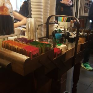 Atmosphäre: Da am Tresen bestellt wird, ist es relativ laut. Ausgefallene Dekoration.